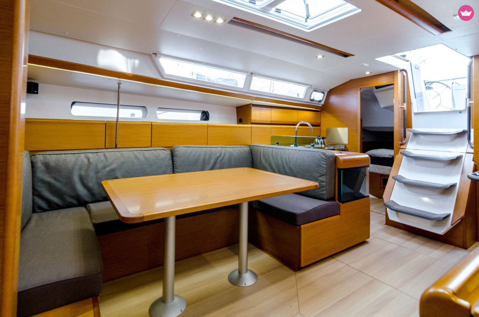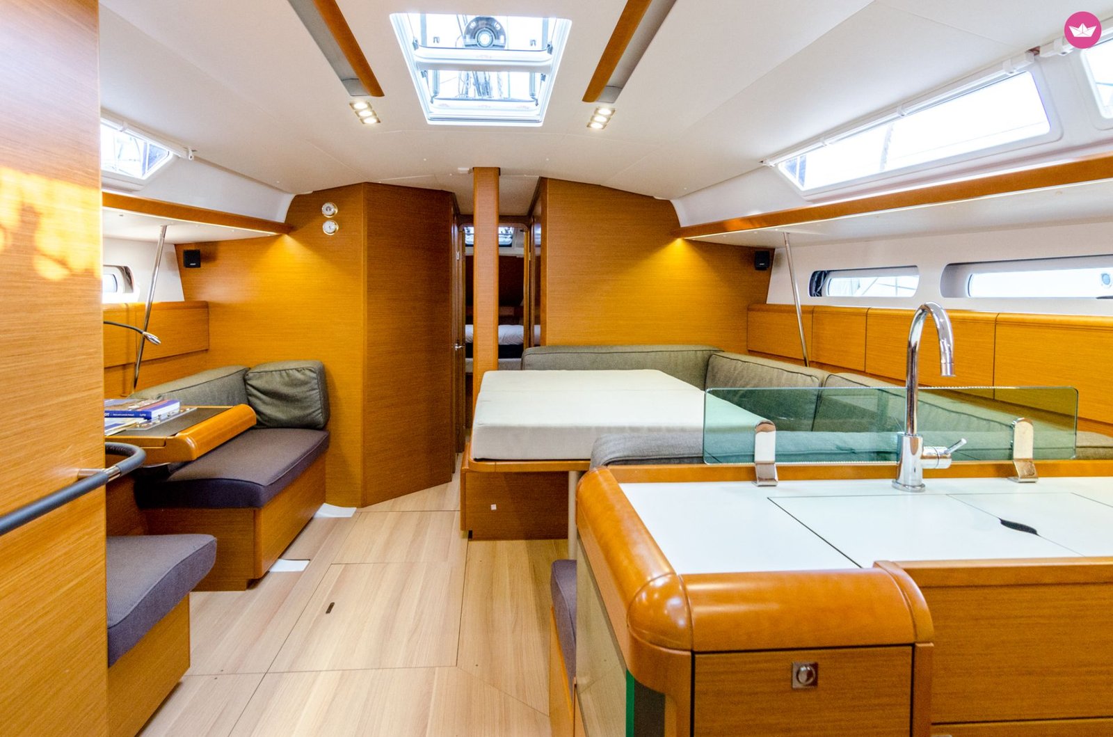 Guests can stretch out in the spacious living area. Jeanneau’s large volume allows for a spacious interior and a nice owner’s cabin. The living area makes the most of the hull volume with a full navigation station and versatile sea cabin. Jeanneau S.O. 449 is a joy to sail shorthanded or with crew.